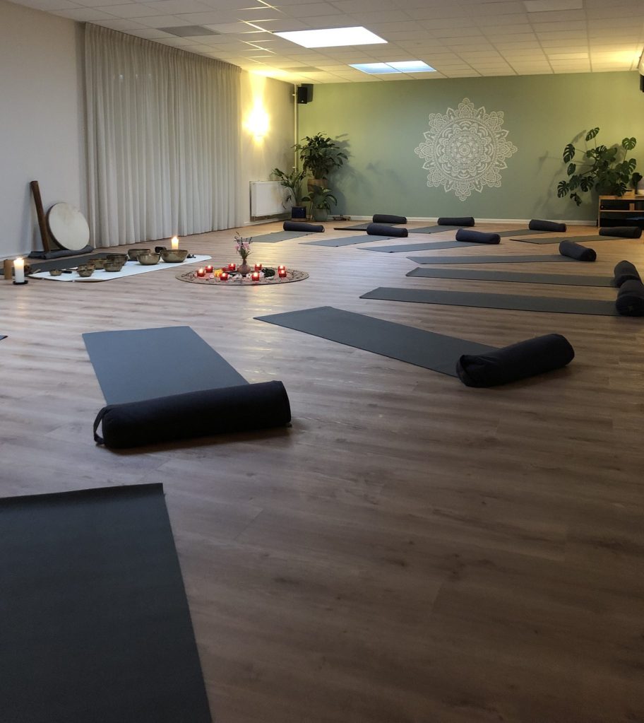 Ik mag bij Ekam in Leidschendam een ruimte huren. Hier geven ze geweldige yogalessen en klankschalen sessies voor groepen.